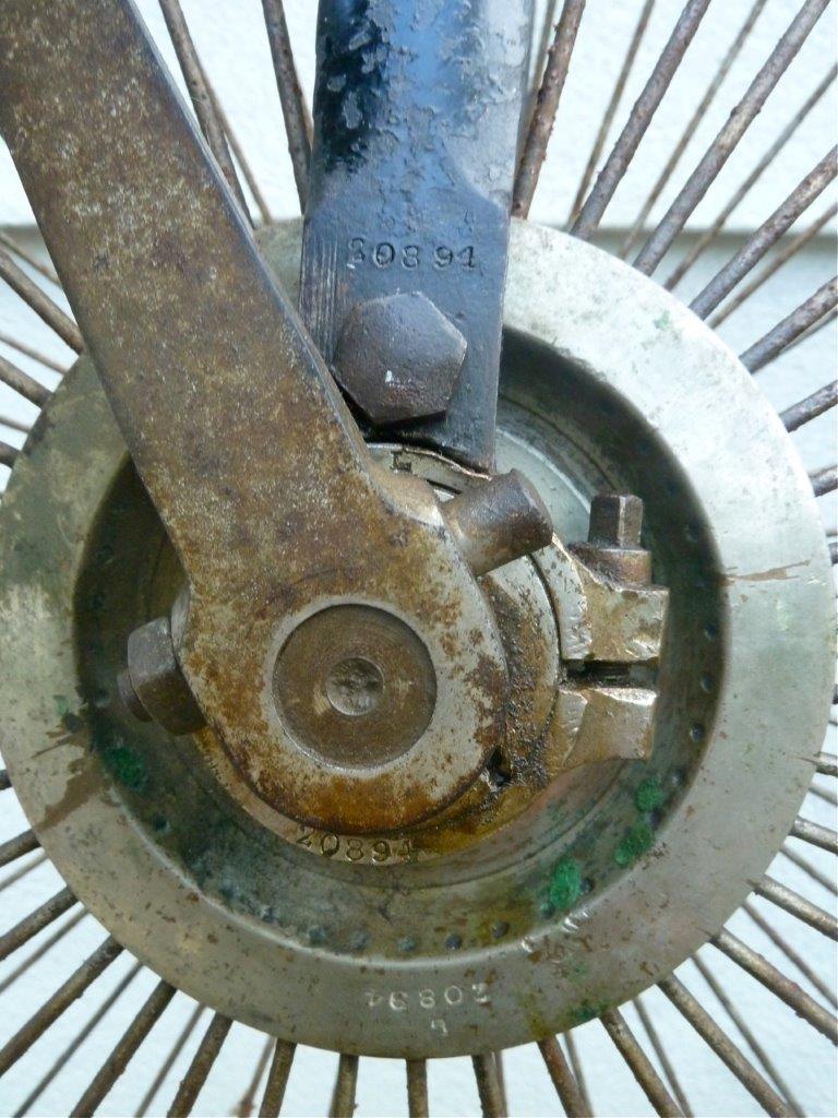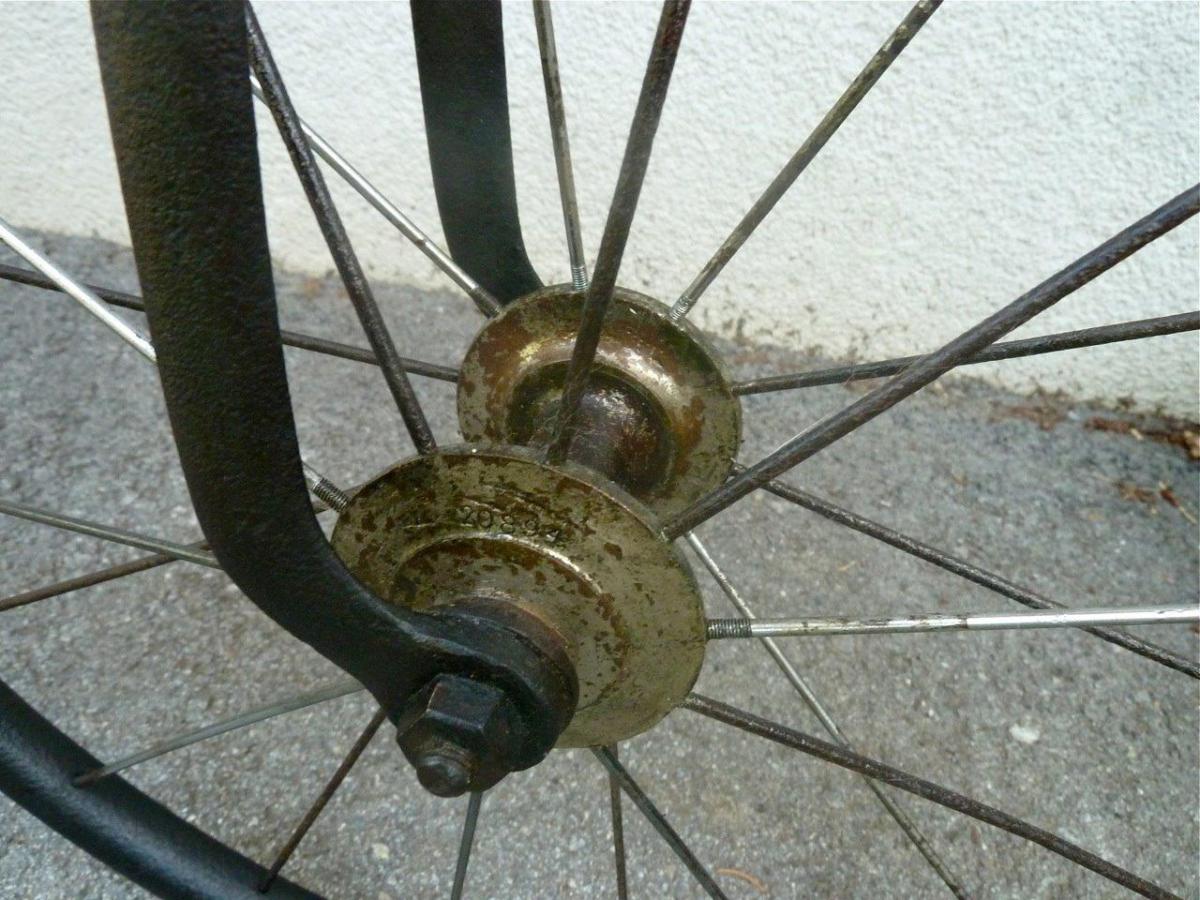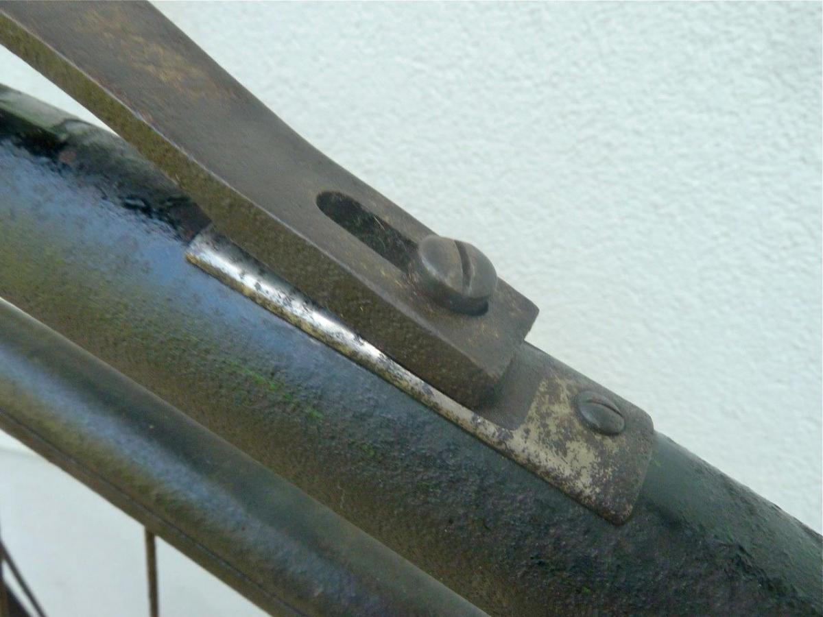 The pictures of this bicycle show typical Rudge details like rear step, brake lever, brake spoon and of course the Rudge patent ball bearings. It wasn't top of the bill, but a very good and reliable roadster, like the Singer Challenge or the Coventry Machinists Universal Club. It has a ball bearing rear hub.