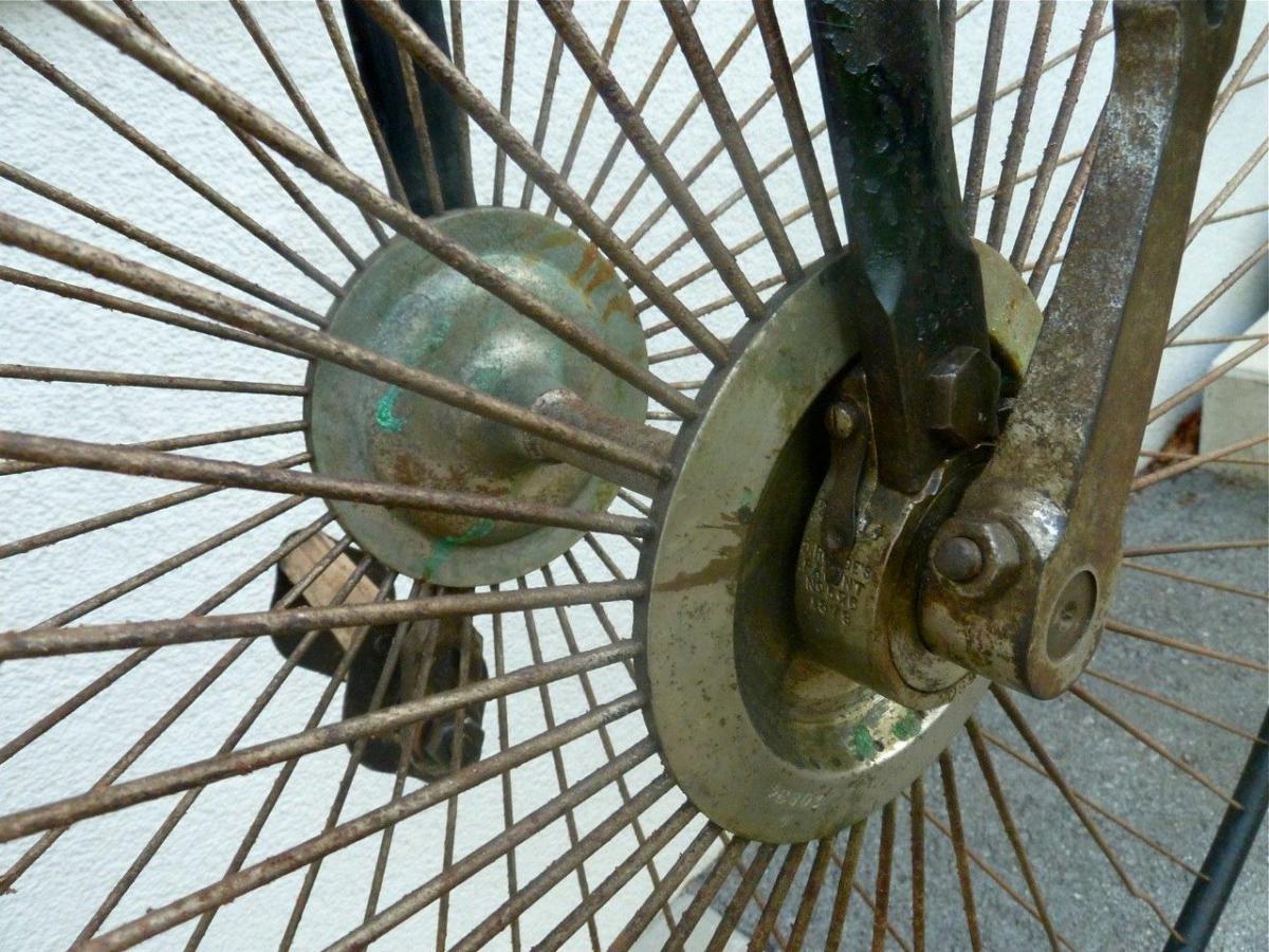 This 56 inch Rudge is in a wonderful original shape: original paint and even some green lining. The bicycle is a No. 2 with serial number 20894, which indicates 1885-1886.